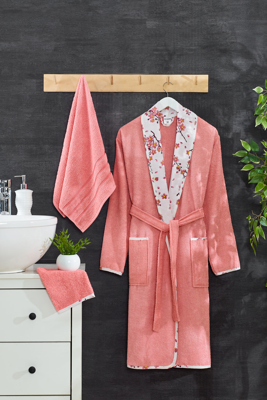 Mila 3 Parça Yetişkin Bornoz Seti Somon