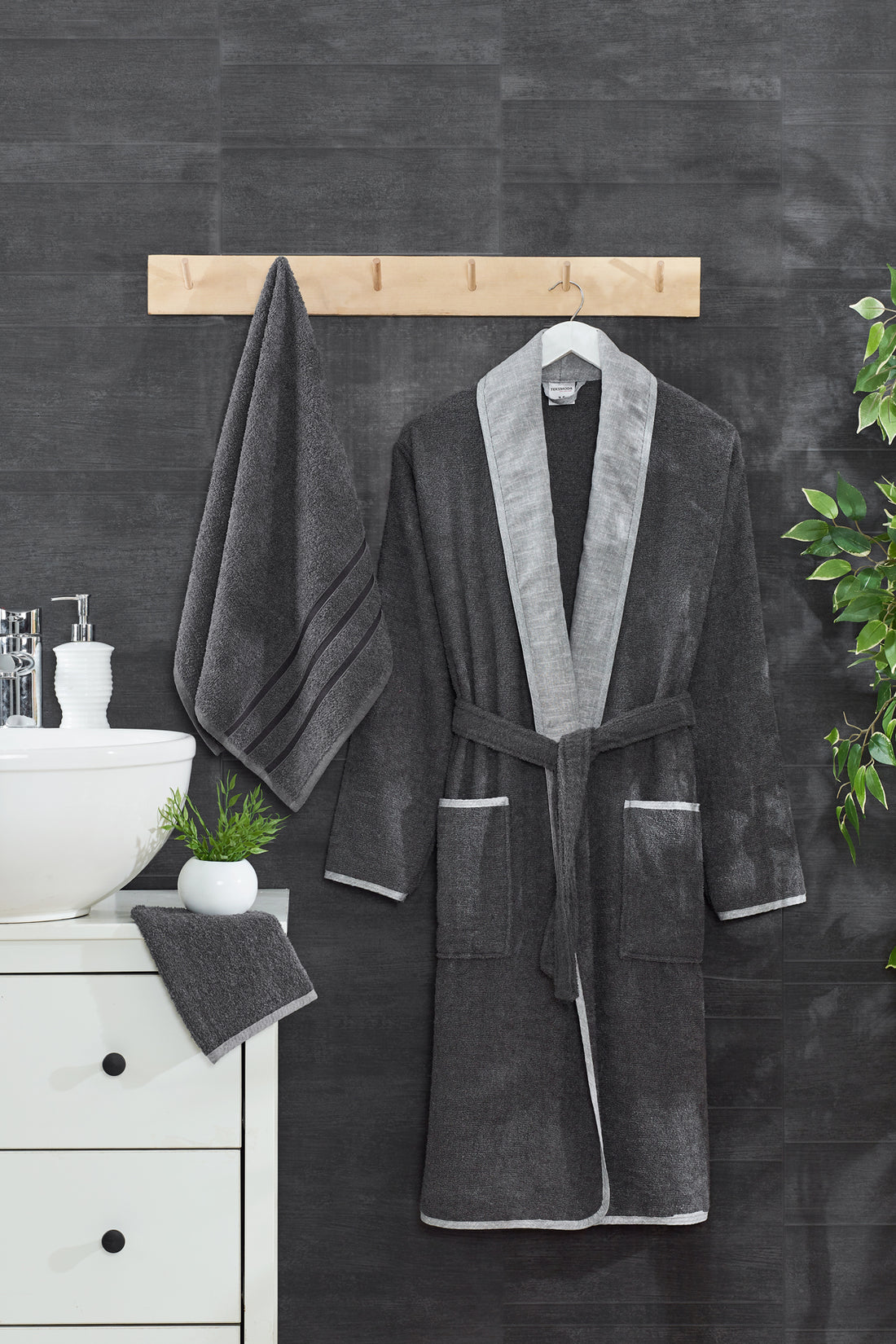 Mila 3 Parça Yetişkin Bornoz Seti Antrasit