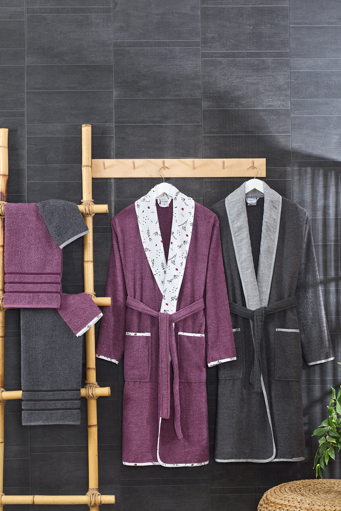6 Parça Yetişkin Bornoz Takımı Çeyiz Seti Antrasit-Mürdüm
