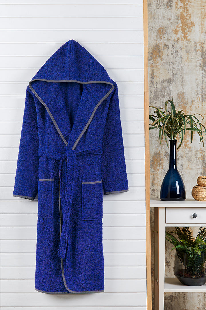 Kapşonlu Yetişkin Bornoz Lacivert