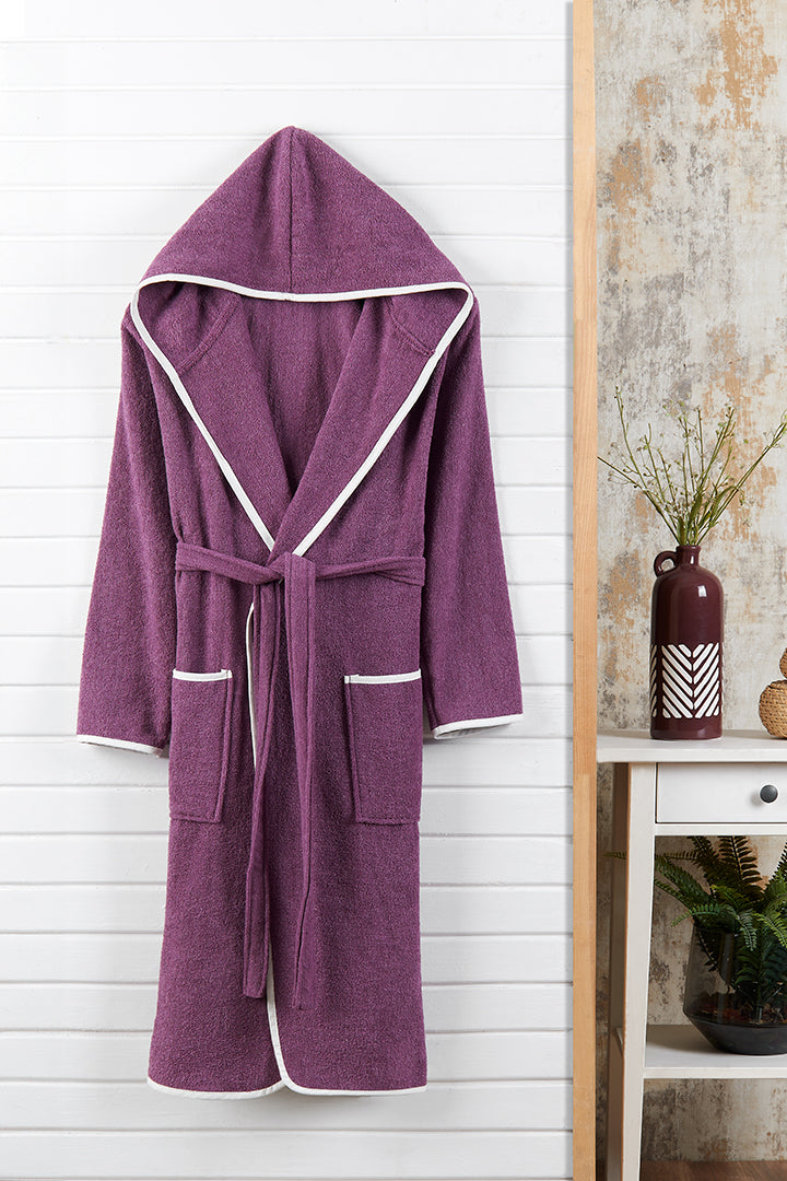 Kapşonlu Yetişkin Bornoz Mürdüm