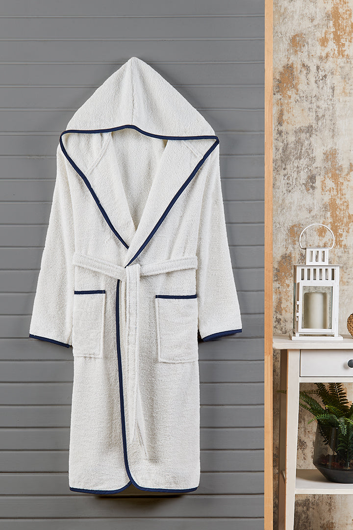 Kapşonlu Yetişkin Bornoz Beyaz-Lacivert