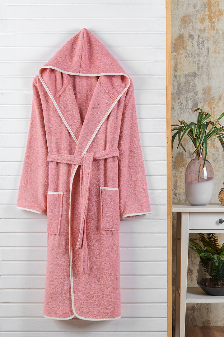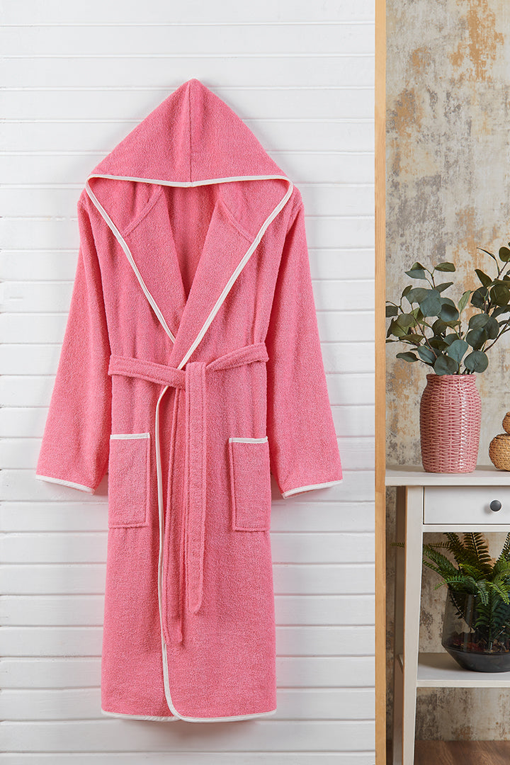Kapşonlu Yetişkin Bornoz Pembe