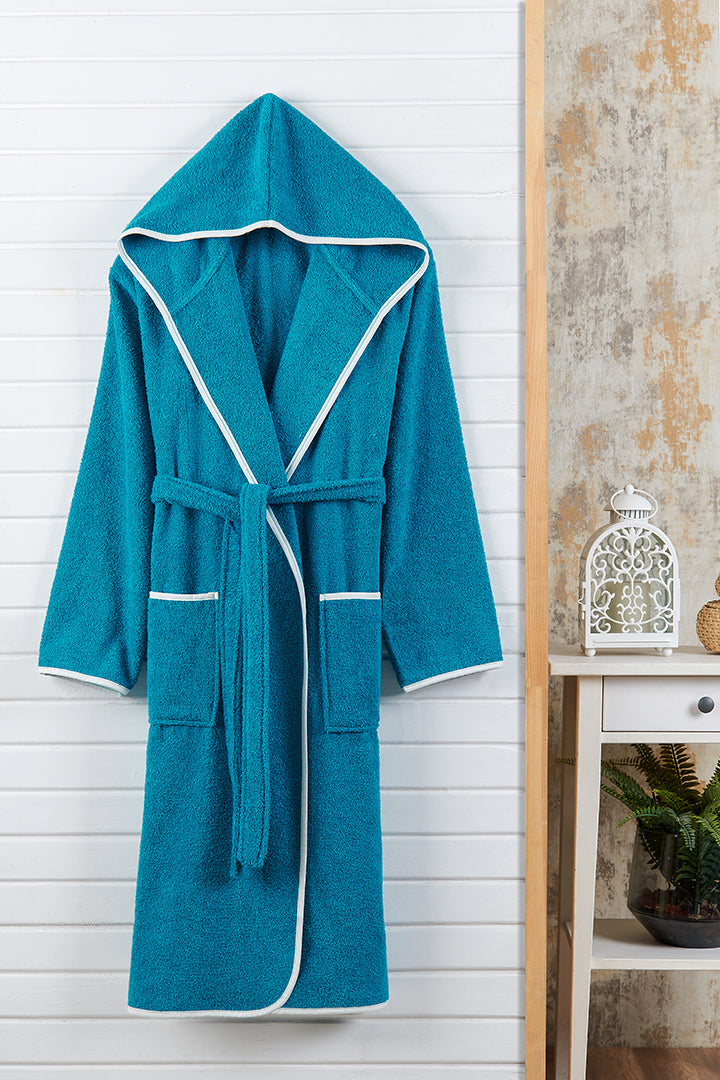 Kapşonlu Yetişkin Bornoz Petrol