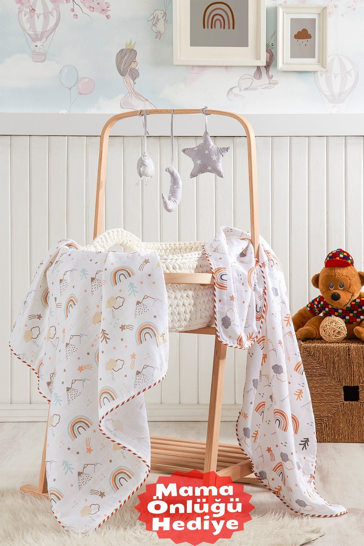 Çok Amaçlı Müslin Örtü 2'li 80x80 cm Gökkuşağı Desen
