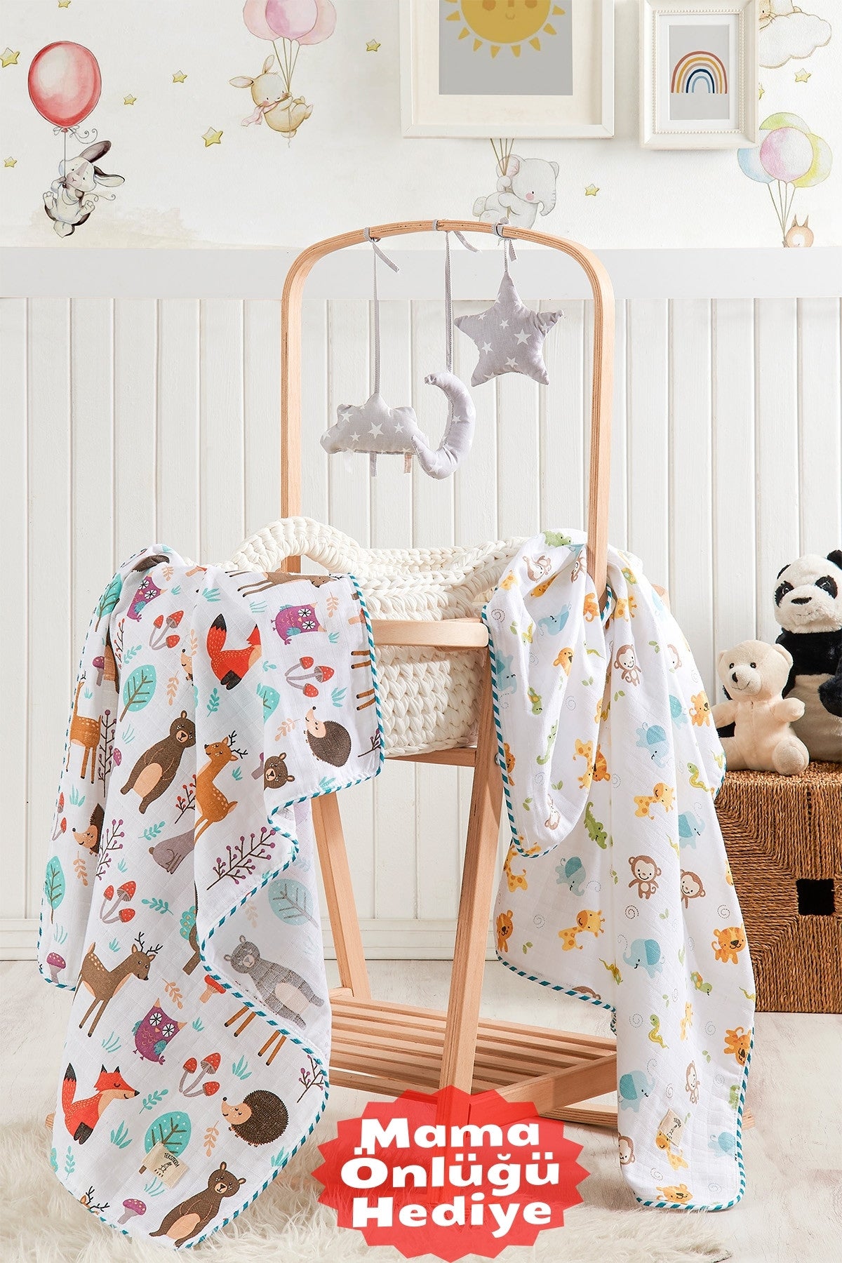 Çok Amaçlı Müslin Örtü 2'li 80x80 cm Hayvanat Bahçesi