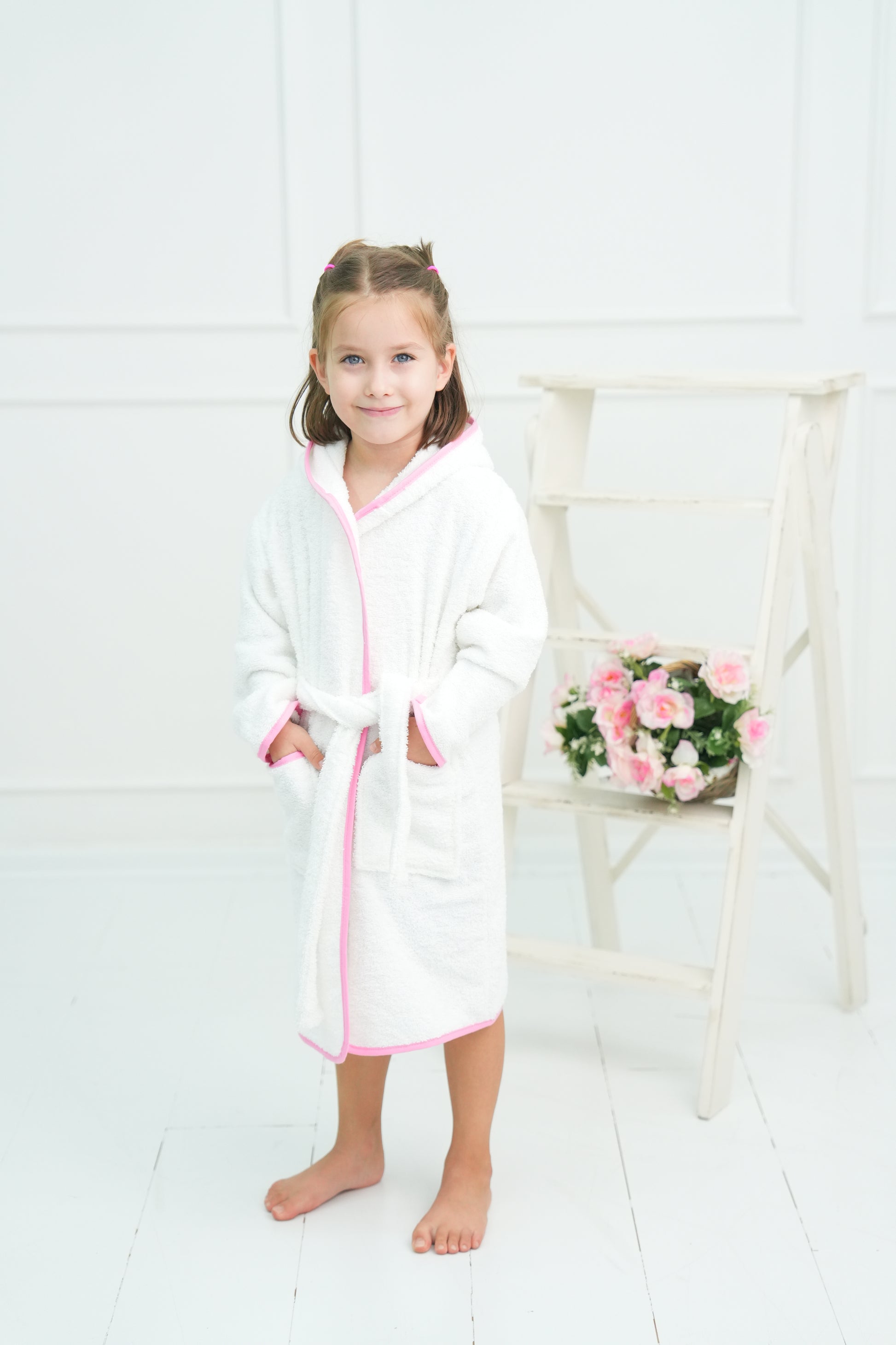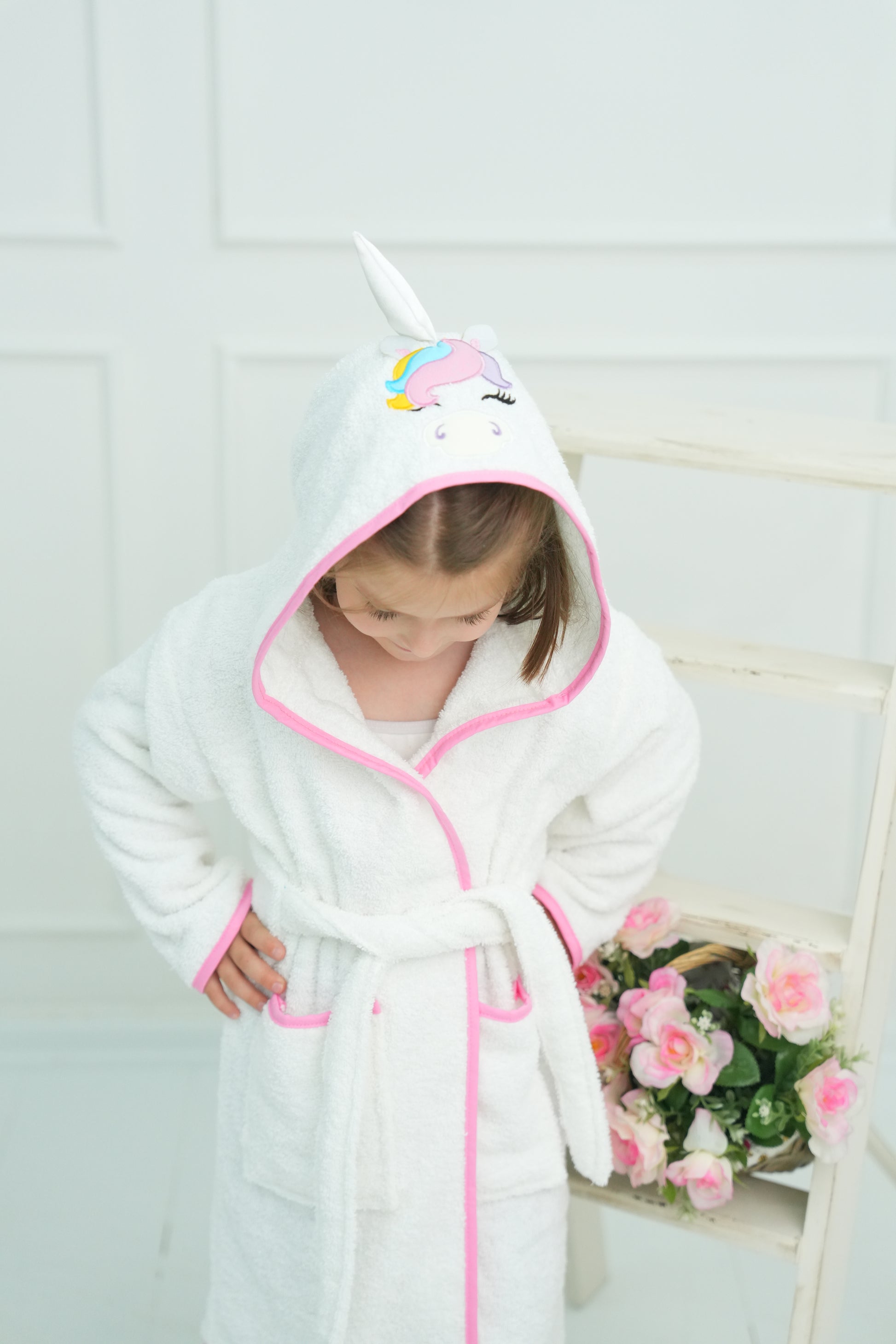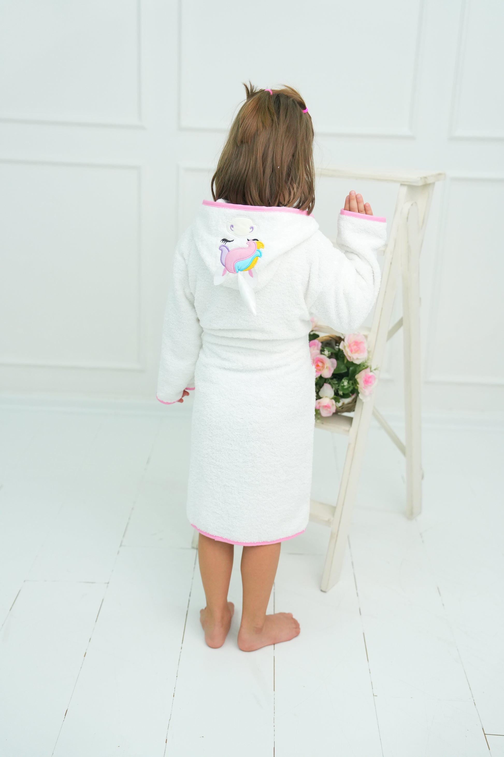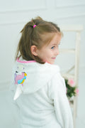 Kapşonlu Çocuk Bornozu Beyaz Unicorn