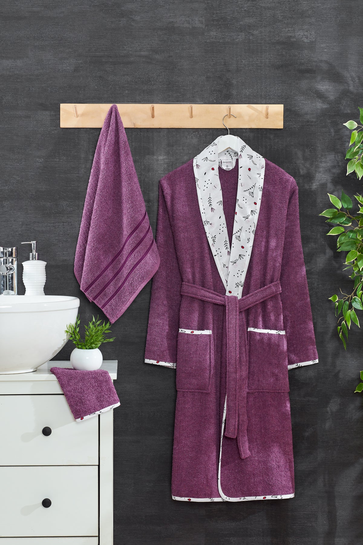 Mila 3 Parça Yetişkin Bornoz Seti Mürdüm